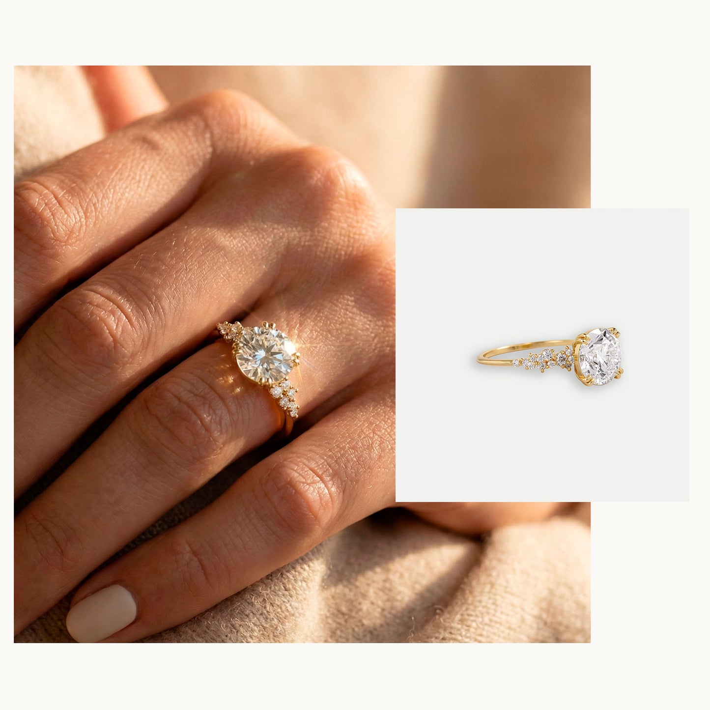 La atención al detalle es absoluta. Hemos escondido dos diamantes secretos en la base de la corona, visibles solo de perfil, que aportan un extra de luminosidad a la piedra central. Un regalo íntimo para quien lo lleva. Todo ello coronado por una majestuosa estructura de 4 garras dobles, aportando un toque regio a esta composición etérea.