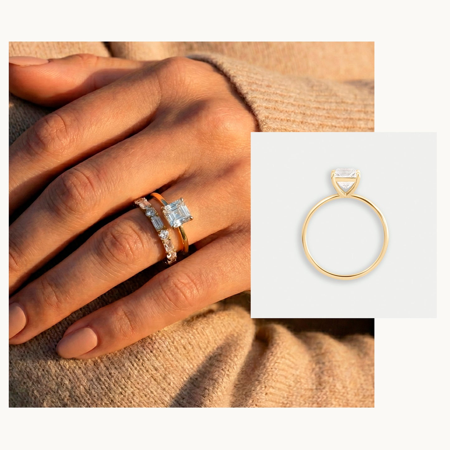 En nuestro taller, hemos refinado este diseño histórico hasta su esencia más pura. Las garras han sido esculpidas para ser visualmente ingrávidas, permitiendo que la luz viaje libremente a través de la gema. Toda esta arquitectura descansa sobre nuestra firma inconfundible: una banda de 1,2 milímetros. Este perfil ultra-fino, marca de la casa, aporta una elegancia diferenciadora y moderna que estiliza la mano y logra que el metal prácticamente desaparezca. El resultado es una pieza que se siente sólida pero etérea, donde el brillo es el único protagonista. Sin halos, sin distracciones; solo una artesanía meticulosa y una simplicidad íntegra.
