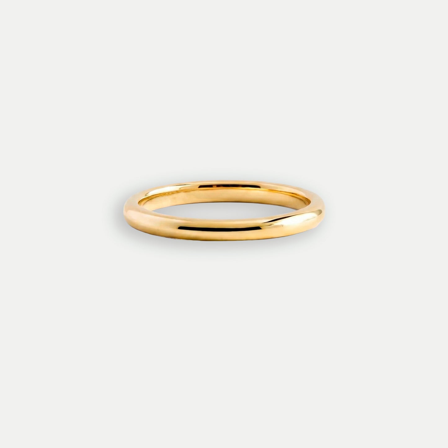 Su perfil suave y sus bordes redondeados están pensados para el uso diario intensivo. Es una pieza sólida, sin huecos ni diamantes, que celebra la pureza del oro macizo. Perfecta para llevar sola, para combinar con cualquier anillo de compromiso o para usar como separador de texturas en un stack.
